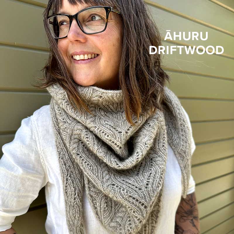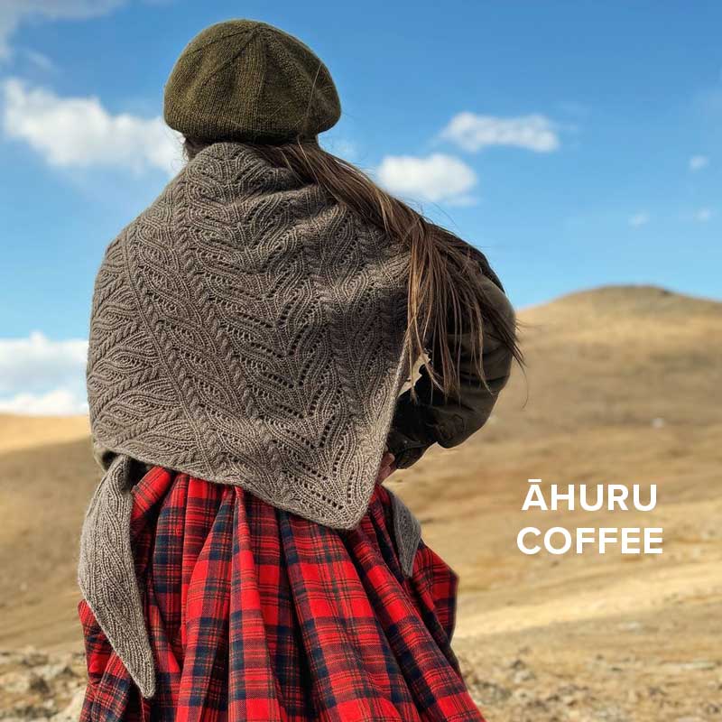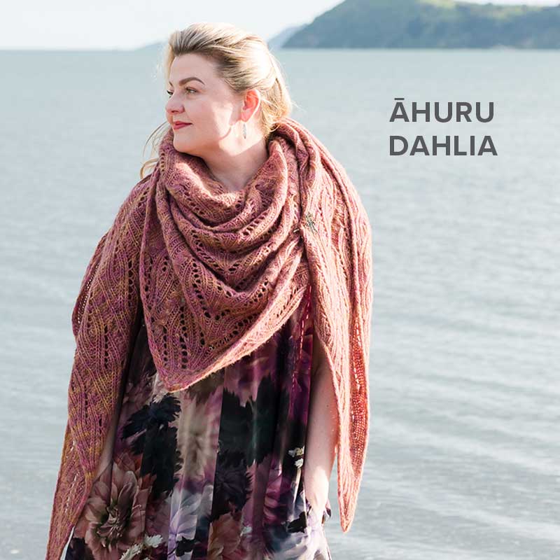 Bitte beachten Sie, dass die Dahlia-Version extra groß ist, da sie mit größeren Nadeln gestrickt wurde. Āhuru ist ein sehr anpassungsfähiges Garn.